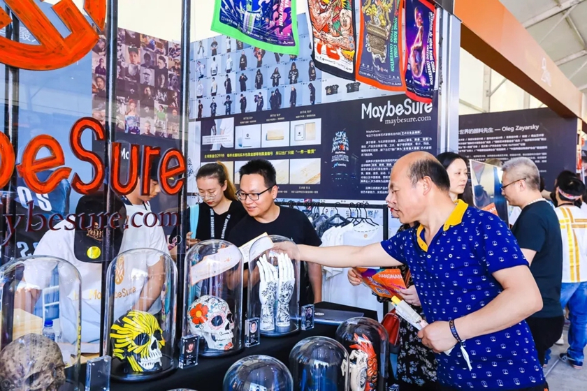 说到本届时装周的时尚亮点,“常熟520潮玩儿节”无疑得到了所有时尚潮人的青睐,这是江南国际时装周首创的一个城市时尚IP,从创意出发、以设计为本,既是一场无比绝伦的视觉盛宴,也是年轻派的城市互动娱乐天地。纵是江南小城,亦有时尚荟萃的年轻节日,潮玩儿节上汇聚了众多国内外的创意潮牌,同时融合了潮服、机车、电竞等多元跨界元素,其中,来自香港的国际艺术品周边潮牌“MaybeSure”还邀请其品牌签约艺术家——俄罗斯艺术家Oleg Zayarsky(大成)和国际书画艺术名人彭国信老师亲临现场参与互动,打造了一场精彩纷呈的时尚创意盛典。